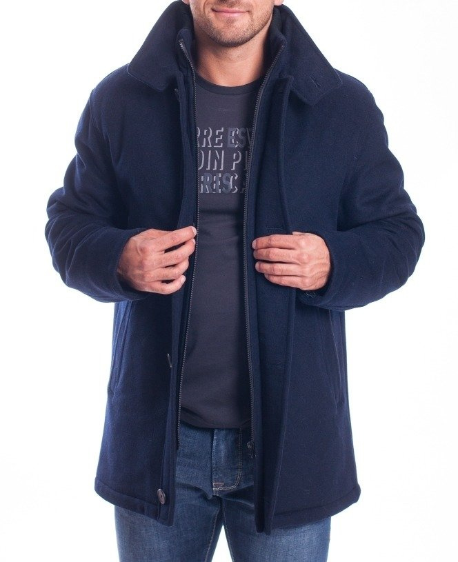 Kurtka wełniana granatowa marki Vernet. Kurtka zapinana na zamek, z dodatkową plisą przykrywającą suwak i bocznymi ukośnymi kieszeniami. Skład: 80 % wełna, 20 % kaszmir. Duży udział wełny powoduje, ze kurtka jest bardzo ciepła i komfortowa, dodatek kaszmiru nadaje tkaninie miękkości. Bardzo elegancka kurtka, która z powodzeniem może zastąpić płaszcz, ponieważ długość kurtki przykrywa marynarkę. Kurtka idealna dla mężczyzn ceniących wygodę i poszukujących bardziej wysmakowanego stylu.