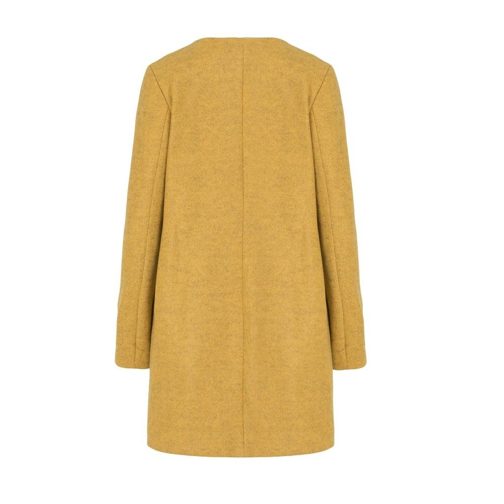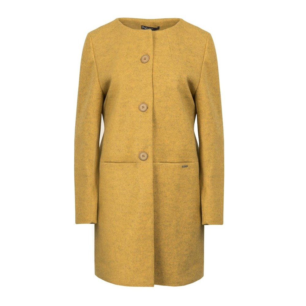 Płaszcz marki Niren w kolorze żółtym. Krótki, przejściowy płaszcz zapinany na trzy guziki na podszewce z wpuszczanymi poziomo kieszeniami w przedniej części. Skład: 65 % poliester, 35 % wełna. Lekki płaszcz, który idealnie przyda się na chłodniejsze dni. Soczysty odcień żółtego będzie uzupełnieniem codziennej stylizacji.