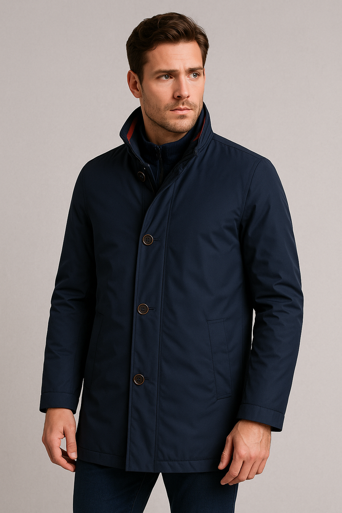 Stylowa i praktyczna kurtka marki Vernet w kolorze granatowym. Model zapinany dwustopniowo – na suwak oraz dodatkowe guziki – co zapewnia lepszą ochronę przed chłodem i wiatrem. Klasyczna długość zakrywająca marynarkę sprawia, że kurtka doskonale sprawdzi się zarówno w codziennych, jak i bardziej formalnych stylizacjach. Wykonana z ciepłych i solidnych materiałów, gwarantuje komfort w chłodniejsze dni, a jednocześnie prezentuje się elegancko i nowocześnie. Idealna propozycja dla mężczyzn, którzy cenią sobie funkcjonalność i ponadczasowy styl.