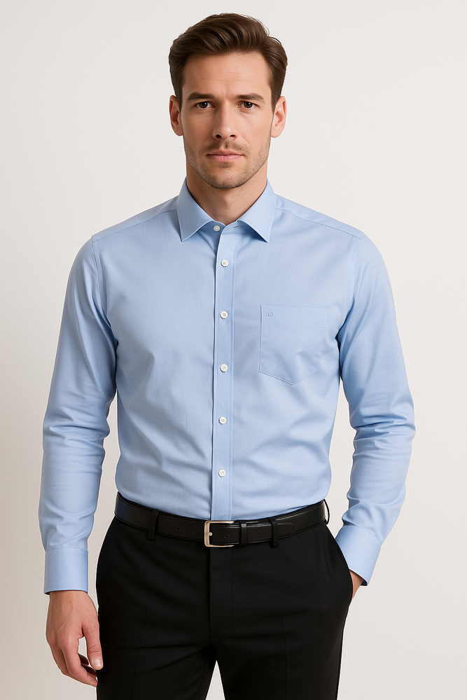 Elegancka koszula męska Pierre Cardin w kolorze jasnoniebieskim to klasyka, która powinna znaleźć się w garderobie każdego mężczyzny. Wykonana z wysokiej jakości, miękkiej bawełny zapewnia doskonały komfort noszenia i przewiewność. Model modern fit subtelnie dopasowuje się do sylwetki, podkreślając jej atuty, a jednocześnie pozostaje wygodny w użytkowaniu. Klasyczny kołnierzyk i praktyczna kieszonka na piersi nadają koszuli uniwersalnego charakteru, idealnego zarówno do biura, jak i na mniej formalne okazje. Skład: 100% bawełna Model został wygenerowany komputerowo. Produkt przedstawia rzeczywistą odzież.