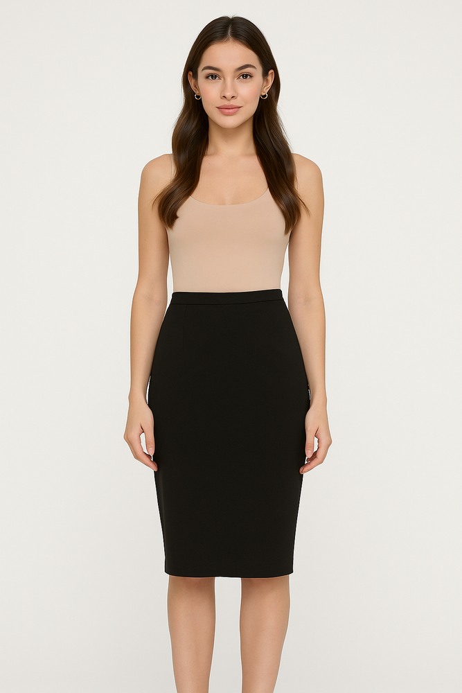 Klasyczna czarna spódnica ołówkowa marki Onari to niezbędny element kobiecej garderoby. Wykonana z wysokiej jakości, elastycznego materiału, znakomicie dopasowuje się do sylwetki, podkreślając talię i biodra. Minimalistyczny krój sprawia, że jest niezwykle uniwersalna – doskonała zarówno do biura, jak i na wieczorne wyjście. Długość do kolan zapewnia elegancki wygląd, a subtelne detale konstrukcyjne gwarantują komfort noszenia i stylowy efekt. Idealnie komponuje się z klasyczną koszulą, dopasowanym topem czy żakietem. Skład: 70% wełna, 30%poliester Model wygenerowany komputerowo. Ubranie przedstawia rzeczywisty produkt.
