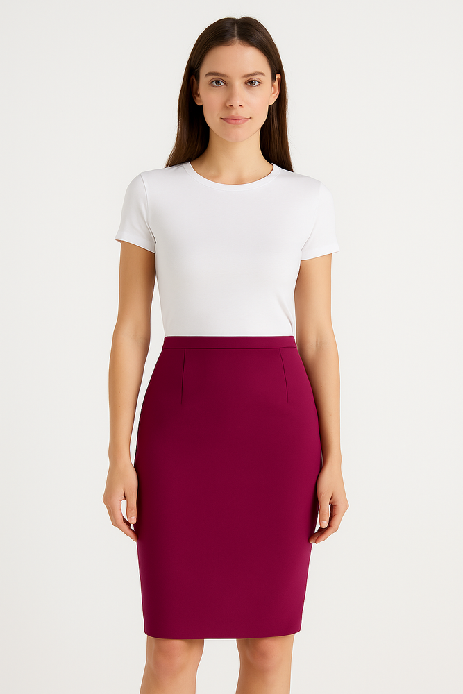 Elegancka spódnica ołówkowa marki Onari to klasyczna propozycja do biura i na formalne okazje. Wykonana z wysokiej jakości, lekko elastycznej tkaniny, doskonale dopasowuje się do sylwetki, podkreślając kobiece kształty. Model z wysokim stanem i długością do kolan optycznie wysmukla i wydłuża nogi. Minimalistyczny krój bez zbędnych dodatków sprawia, że spódnica jest uniwersalna i ponadczasowa – świetnie prezentuje się zarówno z żakietem, jak i elegancką bluzką. Dostępna w głębokim odcieniu malinowym, który doda charakteru każdej stylizacji. Skład: 60% wiskoza, 40% poliester Model wygenerowany komputerowo. Ubranie przedstawia rzeczywisty produkt