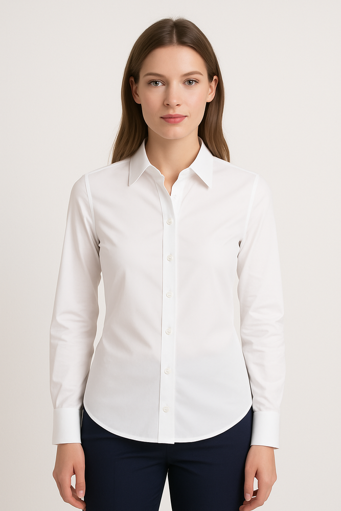 Biała koszula damska Pure Ladies to idealne połączenie klasyki z innowacyjnością. Wykonana z nowoczesnej, elastycznej tkaniny, która zapewnia maksymalny komfort noszenia i nie wymaga prasowania – wystarczy rozwiesić po praniu, by była gotowa do założenia. Fason lekko taliowany subtelnie podkreśla sylwetkę, a kontrafałda z tyłu zwiększa swobodę ruchów i nadaje całości lekkości. Klasyczny kołnierzyk, mankiety zapinane na guziki i eleganckie wykończenie sprawiają, że koszula sprawdzi się doskonale w stylizacjach biurowych, formalnych oraz codziennych. To niezastąpiona baza w garderobie nowoczesnej kobiety.