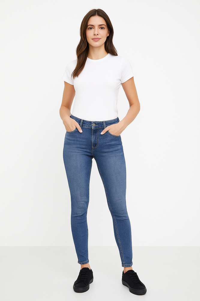 Jeansy Pioneer Katy to świetna propozycja dla kobiet ceniących komfort i nowoczesny wygląd. Uszyte z miękkiej bawełny z dodatkiem elastycznych włókien, zapewniają swobodę ruchów i doskonałe dopasowanie. Wysoki stan wysmukla sylwetkę i modeluje talię, a zwężana nogawka tworzy modny i kobiecy kształt. Klasyczny, średni odcień denimu sprawia, że jeansy łatwo zestawić zarówno z T-shirtem, jak i elegancką bluzką. To uniwersalny model idealny na co dzień. Skład: 94% bawełna, 4% poliester, 2% elastan Model wygenerowany komputerowo. Ubrania przedstawiają rzeczywiste produkty.