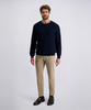 Granatowy sweter męski marki Pierre Cardin wykonany z bawełny z domieszką włókien syntetycznych, które zwiększają trwałość i komfort noszenia. Klasyczny fason z okrągłym dekoltem i subtelną, strukturalną fakturą sprawia, że model prezentuje się elegancko i uniwersalnie. Rękawy oraz dół zakończone elastycznymi ściągaczami zapewniają idealne dopasowanie. To ponadczasowa propozycja, która doskonale sprawdzi się zarówno w codziennych stylizacjach, jak i w smart casualowym wydaniu z chinosami czy marynarką.