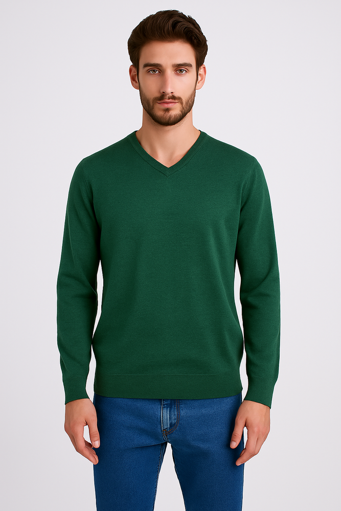 Klasyczny męski sweter wykonany z wysokiej jakości bawełny, która zapewnia komfort noszenia i przewiewność. Gładka struktura materiału oraz dopasowany krój sprawiają, że model świetnie układa się na sylwetce. Dekolt w szpic nadaje mu eleganckiego charakteru, dzięki czemu doskonale sprawdzi się zarówno w stylizacjach casualowych, jak i w połączeniu z koszulą pod marynarkę. Idealny wybór na co dzień i na specjalne okazje – praktyczny, stylowy i ponadczasowy.