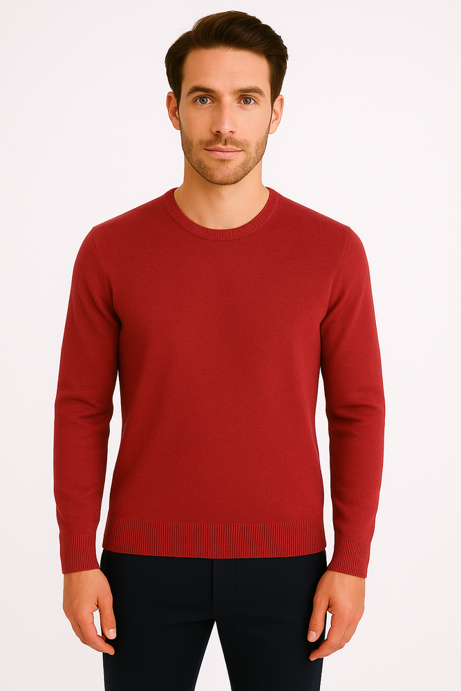 Sweter marki M&M w eleganckim, bordowym odcieniu to klasyczna propozycja wykonana z wysokiej jakości bawełny. Naturalna tkanina gwarantuje komfort noszenia i przewiewność, a prosty krój z półokrągłym dekoltem sprawia, że model prezentuje się schludnie i ponadczasowo. Ściągacze przy rękawach oraz w dolnej części podkreślają dopracowane wykończenie, a głęboka, bordowa barwa dodaje charakteru każdej stylizacji. To uniwersalny sweter, który świetnie sprawdzi się zarówno w codziennym, casualowym wydaniu, jak i w bardziej eleganckim zestawieniu z koszulą czy marynarką.