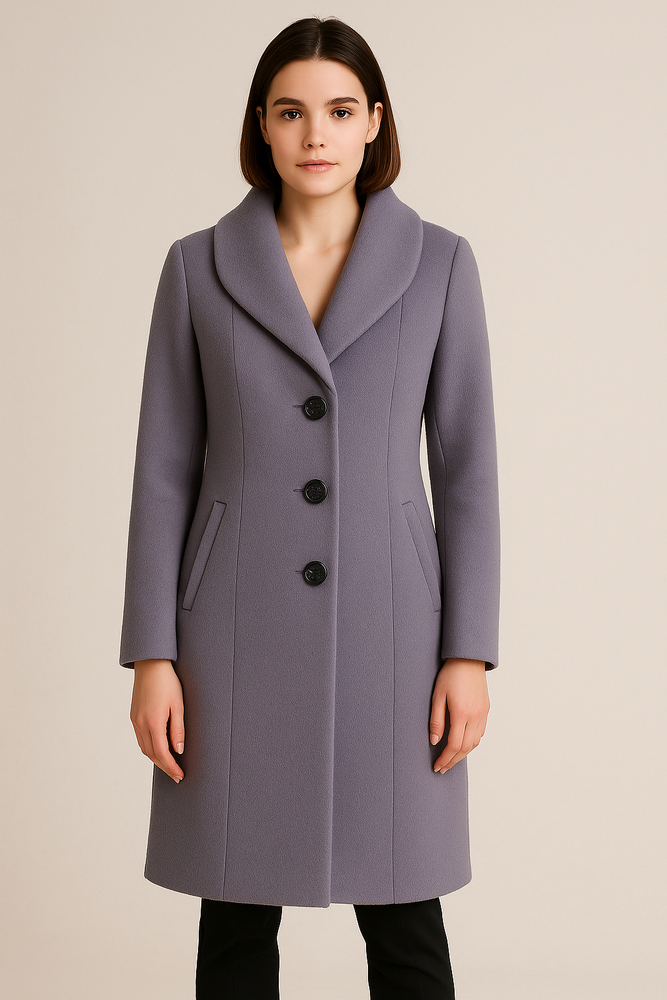 Płaszcz marki Caro Fashion to elegancka propozycja dla kobiet ceniących klasykę i wygodę. Wykonany z wysokiej jakości tkaniny z domieszką wełny, zapewnia ciepło i komfort w chłodniejsze dni. Fason o długości przed kolano został zaprojektowany z myślą o subtelnym podkreśleniu sylwetki. Charakterystyczne detale to szeroki, miękko układający się kołnierz, trzy ozdobne guziki z przodu oraz praktyczne, ukośne kieszenie. Delikatny, lawendowo-szary odcień dodaje całości lekkości i ponadczasowego stylu. To płaszcz, który sprawdzi się zarówno w codziennych stylizacjach, jak i w bardziej eleganckich zestawieniach.