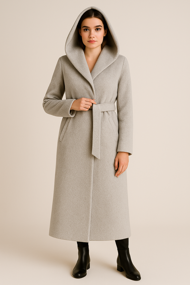 Płaszcz marki Paolo Moretti w odcieniu jasnego popielu to kwintesencja luksusu i elegancji. Wykonany z wyjątkowej mieszanki baby suri alpaki i wełny dziewiczej, zachwyca niezwykłą lekkością, miękkością oraz doskonałymi właściwościami termoizolacyjnymi. Długi fason optycznie wysmukla sylwetkę, a wiązanie w pasie pozwala podkreślić talię i nadać całości kobiecej formy. Płaszcz jest przyjemnie ciepły, a jednocześnie lekki i przewiewny, dzięki czemu gwarantuje komfort noszenia nawet w najbardziej wymagające dni. To ponadczasowy model, idealny dla kobiet ceniących jakość, subtelną elegancję i ponadczasowy styl.
