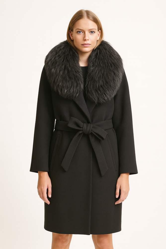Luksusowy płaszcz marki Paolo Moretti to połączenie klasycznej elegancji i najwyższej jakości tkanin. Wykonany z miękkiej, szlachetnej mieszanki wełny i kaszmiru, zapewnia wyjątkowy komfort noszenia, idealną termikę oraz piękny, szlachetny wygląd materiału. Model wyróżnia się okazałym, odpinanym kołnierzem z naturalnego lisa, który nadaje stylizacji ekskluzywnego charakteru. Po jego odpięciu płaszcz zyskuje bardziej minimalistyczną, całoroczną formę – dzięki temu możesz dopasować go do różnych okazji i pór roku. Ten płaszcz to inwestycja w ponadczasowy styl – doskonały na chłodne dni, stylowe wyjścia czy eleganckie miejskie zestawy. Idealny wybór dla kobiet ceniących jakość premium i klasykę w nowoczesnym wydaniu.