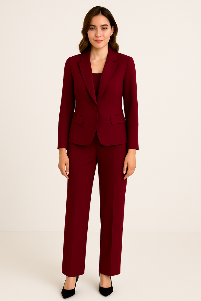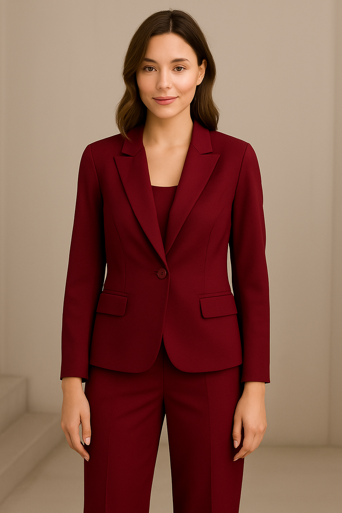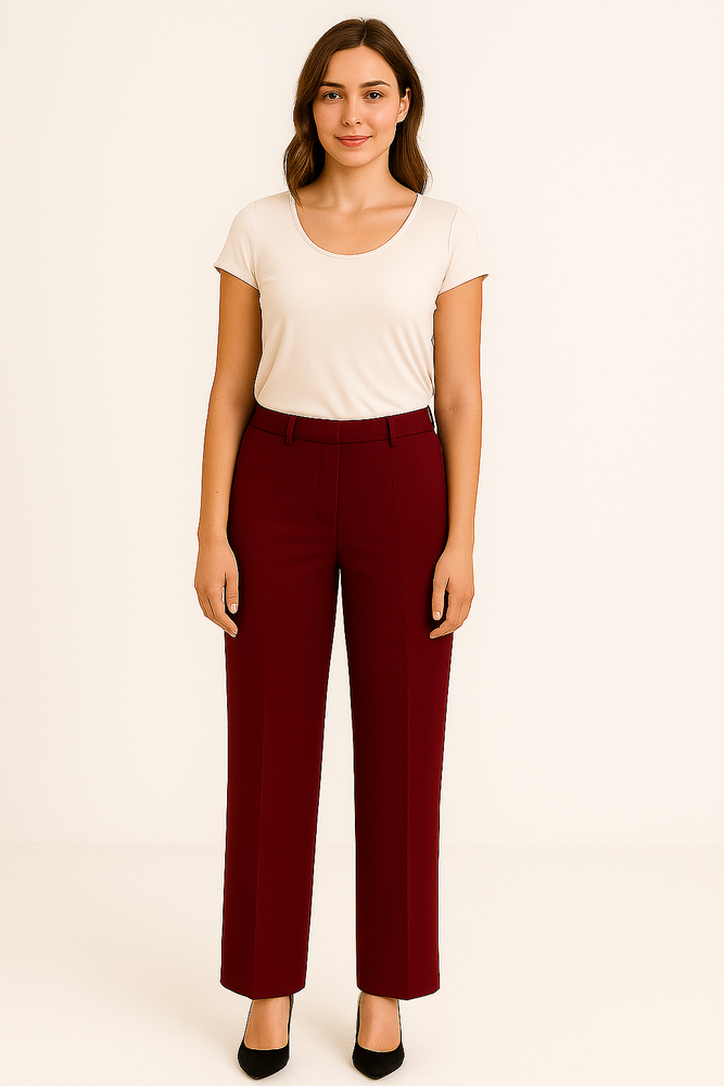 Spodnie marki Metafora to klasyczna propozycja dla kobiet ceniących elegancję i wygodę. Model o prostym kroju, został uszyty z wysokiej jakości tkaniny w głębokim odcieniu bordo. Doskonale układają się na sylwetce, podkreślając jej proporcje, a jednocześnie zapewniają komfort noszenia przez cały dzień. Do kompletu dostępny jest żakiet w tym samym kolorze, który tworzy ze spodniami szykowny garnitur idealny do pracy, na spotkania biznesowe lub eleganckie okazje.