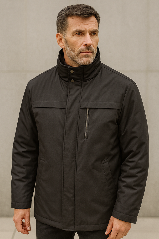 Stylowy czarny płaszcz Lavard to propozycja dla mężczyzn ceniących połączenie elegancji i praktyczności. Model zapinany na suwak oraz kryte napy zapewnia wygodę użytkowania, jednocześnie zachowując minimalistyczny, schludny wygląd. Gładka linia frontu sprawia, że płaszcz świetnie komponuje się zarówno z garniturem, jak i codziennymi stylizacjami. Z tyłu zastosowano dekoracyjne cięcie, które podkreśla nowoczesny charakter modelu i dodaje mu lekkości. Staranne wykończenia, wysoka jakość tkaniny oraz ponadczasowy krój sprawiają, że jest to okrycie idealne na chłodniejsze dni. Płaszcz Lavard to niezawodny wybór dla mężczyzn, którzy chcą wyglądać stylowo i czuć się komfortowo każdego dnia.