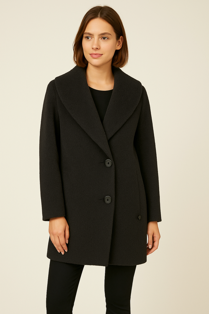 Elegancka kurtka GETEX wykonana z luksusowej mieszanki alpaki i wełny to połączenie ponadczasowego stylu, wyjątkowego ciepła oraz niezwykłej lekkości. Miękka, puszysta tkanina otula sylwetkę, zapewniając komfort nawet w chłodniejsze dni, a klasyczny krój z szerokim, efektownym kołnierzem dodaje całości wyrafinowanego charakteru. Model pięknie układa się na figurze, podkreślając kobiecą linię i nadając stylizacji subtelnej elegancji. Zapięcie na guziki podkreśla jego klasyczny wygląd, a staranne wykończenie świadczy o wysokiej jakości wykonania. To płaszcz idealny zarówno do codziennych, jak i bardziej formalnych zestawów, wybór dla kobiet ceniących luksus i komfort w najlepszym wydaniu.